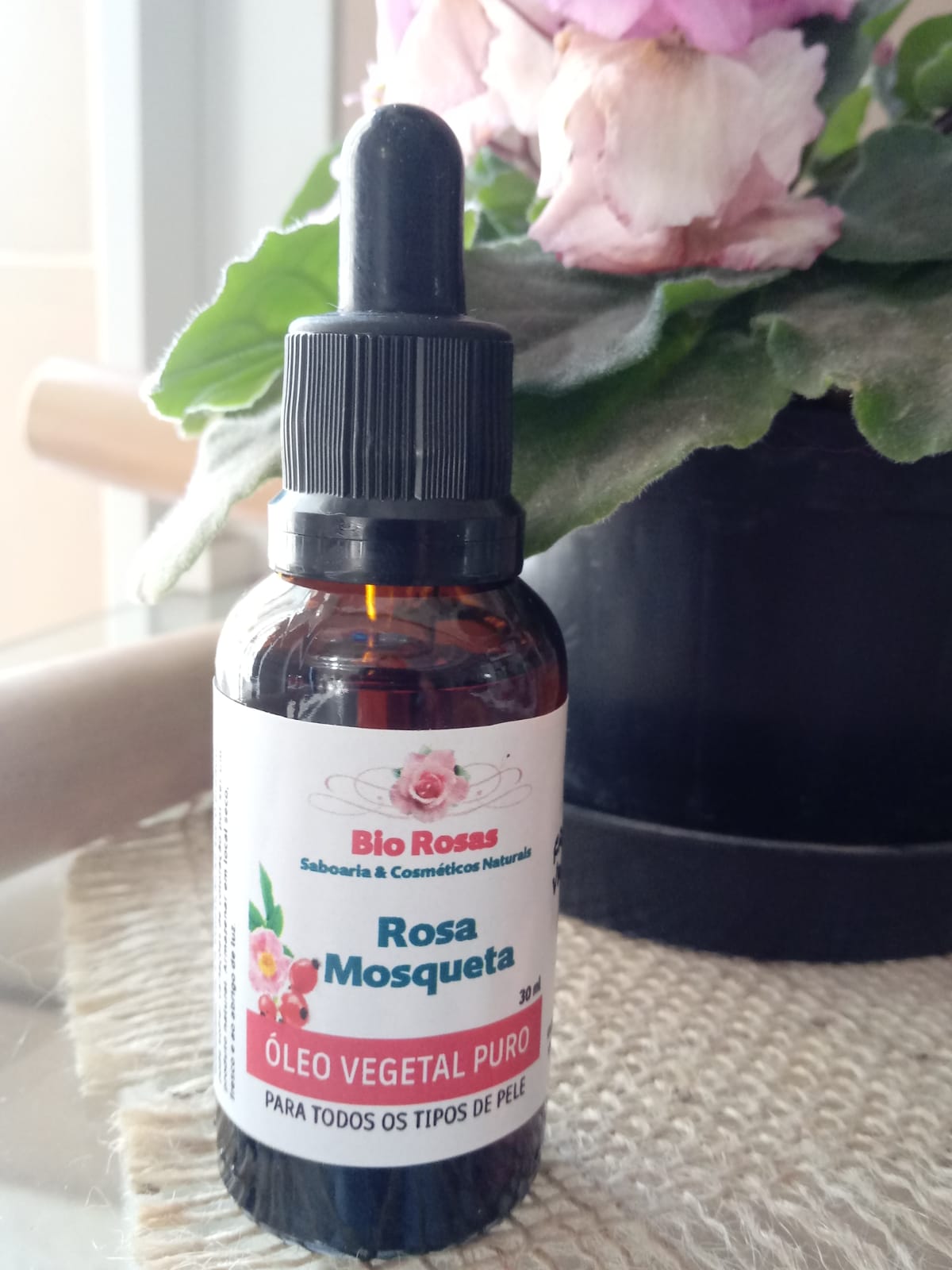 ÓLEO VEGETAL DE ROSA MOSQUETA Rosa rubiginosa affinis Origem: Andes Chilenos Método de Extração: Prensado e filtrado por winterização Parte Utilizada: Sementes 100% Puro e Natural – Prensado a frio das sementes, filtrado por winterização. Rico em ácidos graxos poli-insaturados Ômega-6 e 9, vitamina A, e vitamina C. Regenera o tecido cutâneo, auxiliando em tratamentos de manchas de acne, manchas de sol e melasma. Atenua estrias, cicatrizes e queloides. Ação anti-inflamatória e cicatrizante, usado para tratar rosácea e dermatite. Possui um excelente poder hidratante e rejuvenescedor. Proporcionando brilho e elasticidade à pele. Além de amenizar olheiras e bolsas sob os olhos. Também serve para hidratar cabelos secos e danificados. Óleo vegetal 100% Puro e Natural. Sua composição é livre de conservantes, parabenos, sulfatos, corantes, silicone e essências artificiais. Produto vegano e livre de testes em animais. Uso: Com a pele devidamente higienizada aplique de 2 a 4 gotas diretamente sobre a pele, massageie em movimentos circulares até sua total absorção. Pode ser aplicado puro, ou diluído com óleos essenciais, máscaras de argilas, séruns, cremes, ou gel de aloe vera. Pode ser usado como óleo carreador para óleos essenciais, e também ser adicionado a shampoos, máscaras de hidratação ou umectações. Composição: Rosa rubiginosa seed oil.